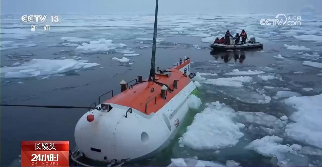 中国科学院深海科学与工程研究所研究员 田丽艳:你眼睁睁地看潜器就在下面,它就是出不来。因为它刚开过来,那个冰就又过去了,潜水器回收过程中,上方不能有冰,但是因为这个冰的覆盖率很大,你很难找到一片特别开阔的水塘。