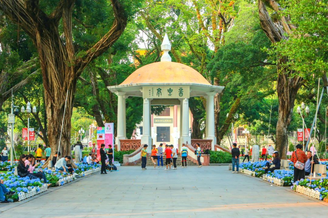 人民公园近年来打造“推门见绿、出行有景”的宜居空间。重点优化林下空间,补种榕树、苹婆等乡土树种,目前已达52种,占树木总量的61.9%;同时种植39种芳香植物、38种蜜源植物和11种固碳植物,不仅美化环境,更吸引了40种鸟类在此栖息,绿化覆盖率高达94.5%。